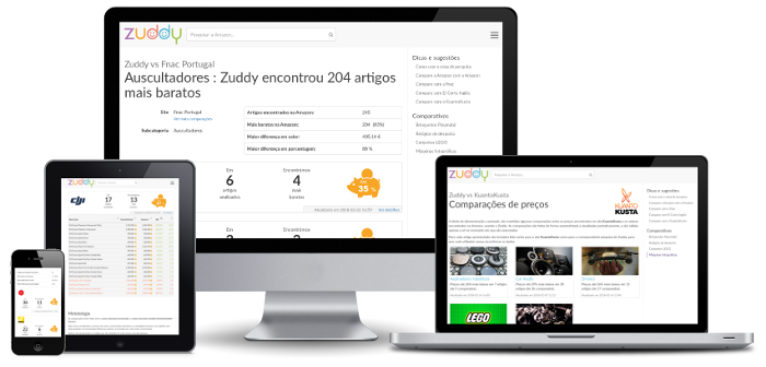 O Zuddy limita as suas comparações a produtos iguais (mesma marca, mesmo modelo) nas lojas Amazon europeias, reconhecidas mundialmente pela sua fiabilidade e qualidade de serviço ao cliente.