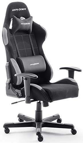 DX RACER 5 - Silla de escritorio/oficina/ gaming con ruedas, altura ajustable, tapizada, reposabrazos, Negro/Gris, 74 x 52 x 123-132 cm