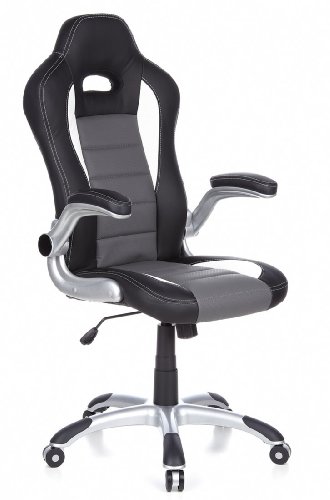 HJH Office, 621710, Gaming chair, Home office chair, RACER SPORT, black, faux leather, High back sport racing car swivel computer pc chair , armrest fold back, modern and ergonomic design